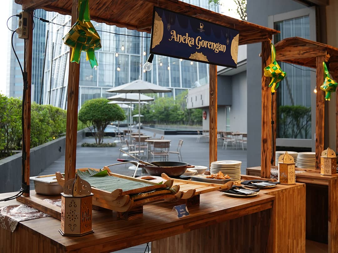 The iftar spread features an array of curated selections, beginning with traditional ta’jil such as Es Campur Pelangi, Kolak Biji Salak, and premium dates. Main course highlights include Beef Rendang, Honey Glazed Roasted Chicken, Chicken Kung Pao, Biryani Rice, and Grilled Fish with signature sauces. Live cooking stations from Teppanyaki and Mie Ayam to Bakso, enhance the interactive dining experience, complemented by assorted pastries, puddings, and ice cream for a delightful finish.